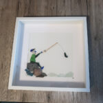 Recycling von Glasscherben ausschließlich vom Strand, unbehandelt, kreativ - kreativ mit schlichtem hinzugefügten Strich entstehen Bilder -